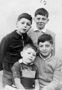 Je nais donc un an plus tard dans cette même ville d'Héricourt et conserverai donc à jamais une attache à cette cité industrielle du pays de Montbéliard bien qu'haute-saônoise. Mon père est le dernier né de 4 enfants, 4 garçons, car depuis plusieurs générations les enfants Duchêne sont des garçons, exceptée la petite Camille de mon cousin Damien. Mes oncles sont donc Jacques et Philippe, jumeaux nés en 1947 et Jean-François né en 1949. Le premier cité rencontrera donc lui sa future femme, Marie-Claude Cottrelle, lors de vacances de la famille dans le Pas-de-Calais, à Berck (1964). Pour Jean-François comme pour mon père l'épouse est héricourtoise, Danielle Frantz. (photo datée de 1956) |